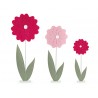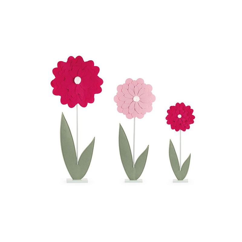 Set di tre peonie in feltro con base di colore rosa e fuxia.
