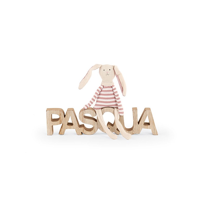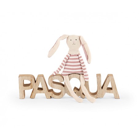 Scritta "Pasqua" in legno con coniglietto a righe rosa