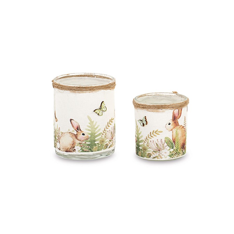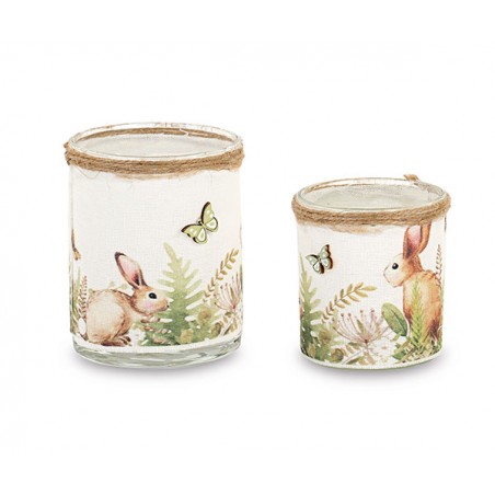 Set di due porta t-light con disegni di conigli