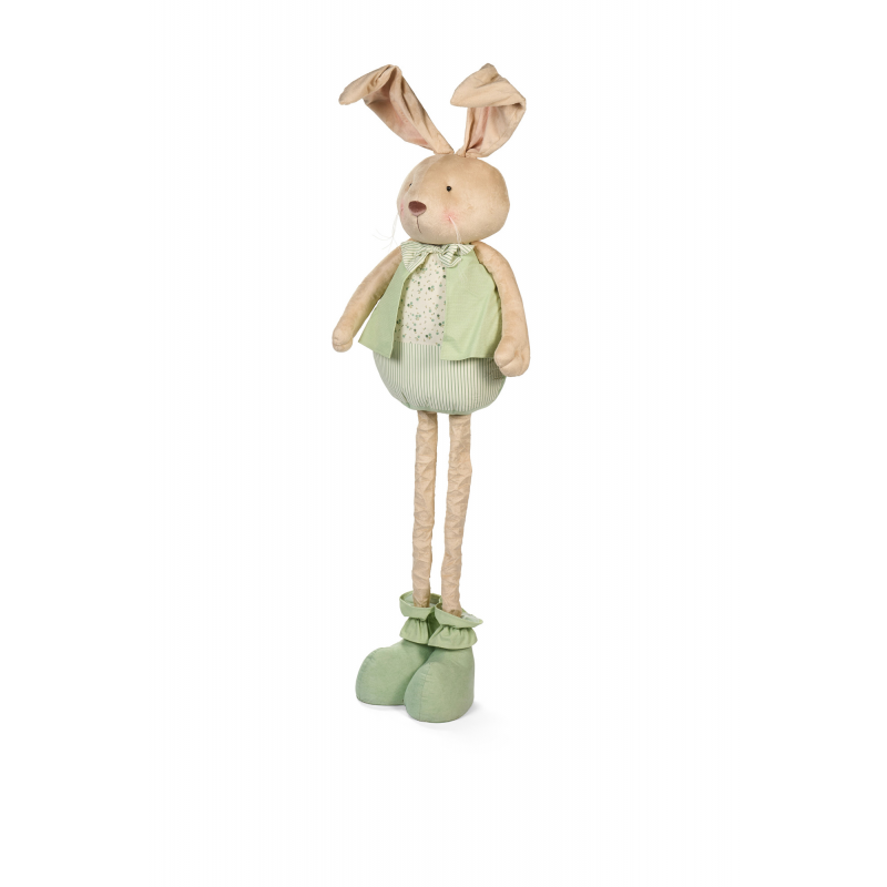 Coniglio in piedi con vestito e gambi telescopiche disponibile nella versione maschile o femminile.