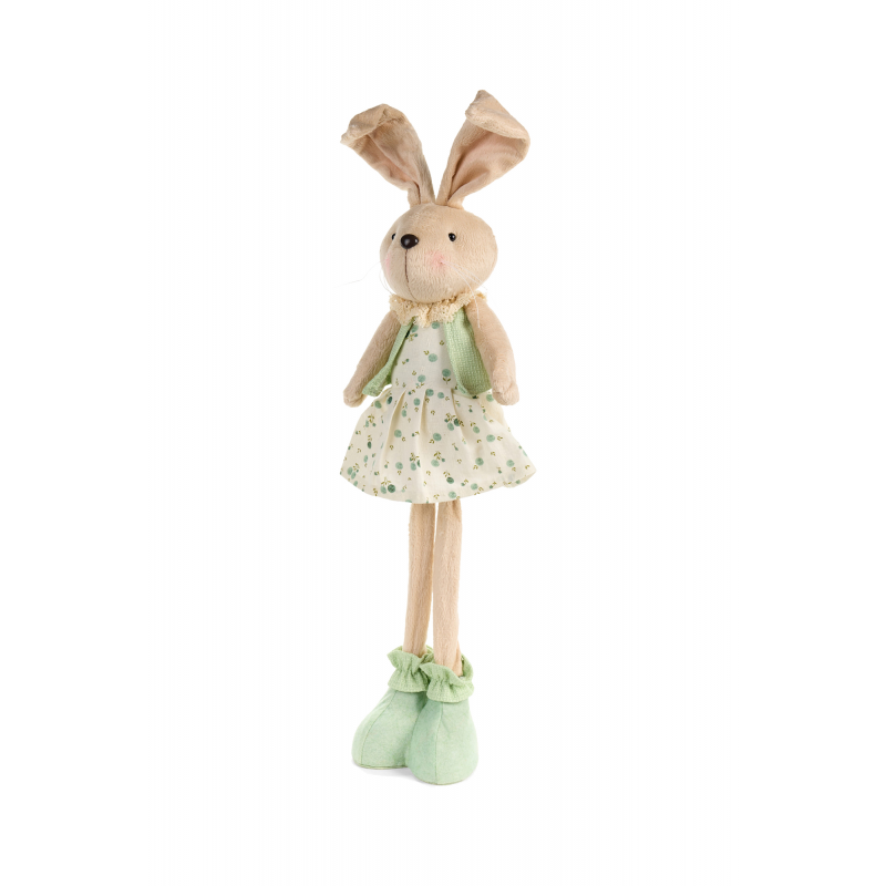 Coniglio in piedi con vestito e gambi telescopiche disponibile nella versione maschile o femminile.
