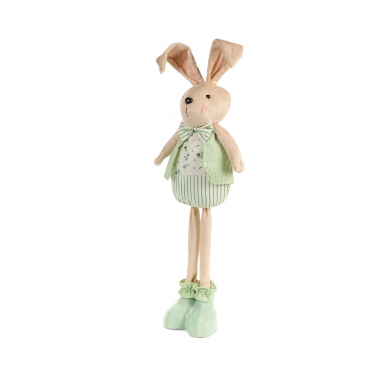 Coniglio in piedi con vestito e gambi telescopiche disponibile nella versione maschile o femminile.