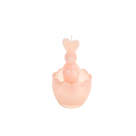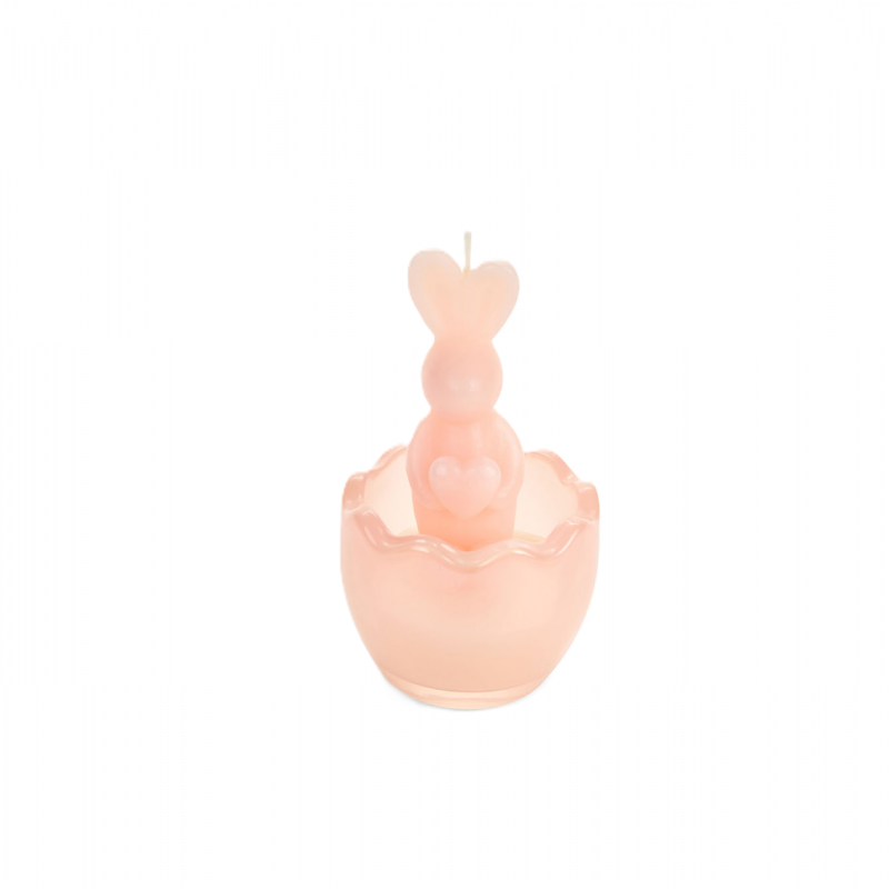 Candela in paraffina colorata a forma di uovo con coniglietto.