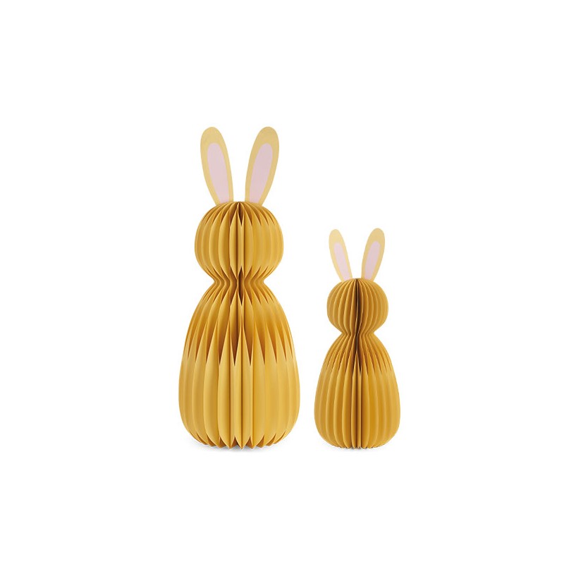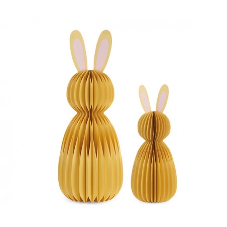 Set di 2 conigli in carta gialla con trama plissè.