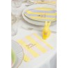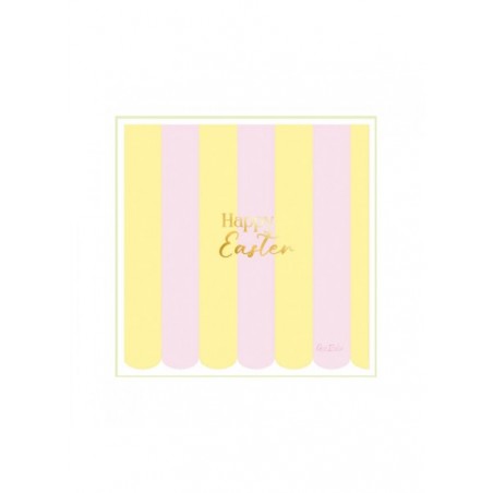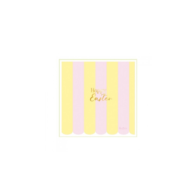 Il tovagliolo è decorato con righe regolari, delicate e ben bilanciate, al centro spicca la scritta “Happy Easter”, in oro che completa il decoro con un tocco festivo e prezioso, creando un punto focale elegante.