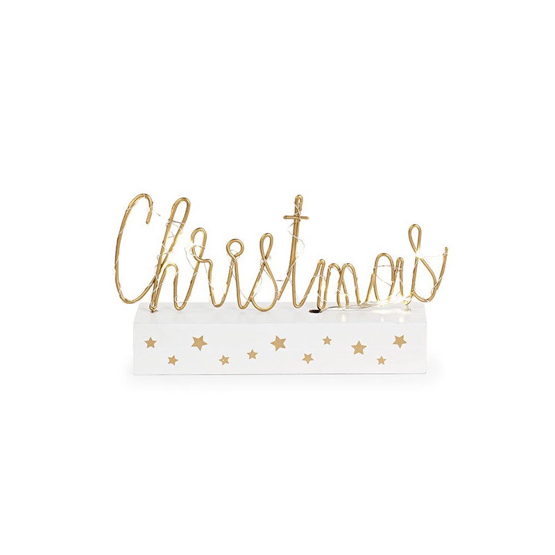 Scritta "Christmas" in metallo con LED (pile incluse)