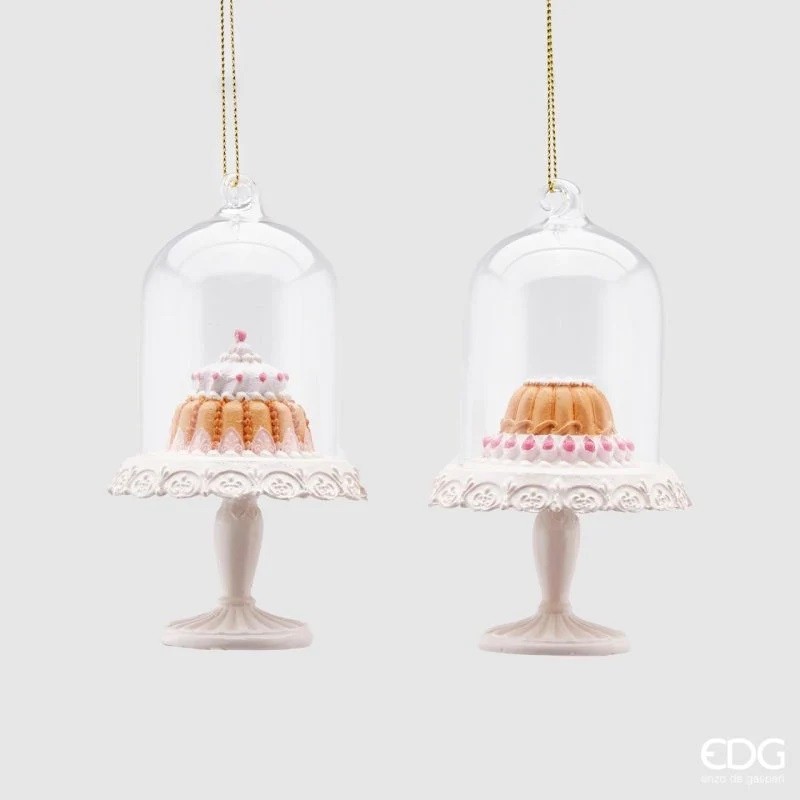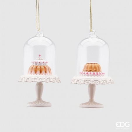 Decorazione da appendere a forma di alzata con tortino all'interno, collezione Enzo de Gasperi