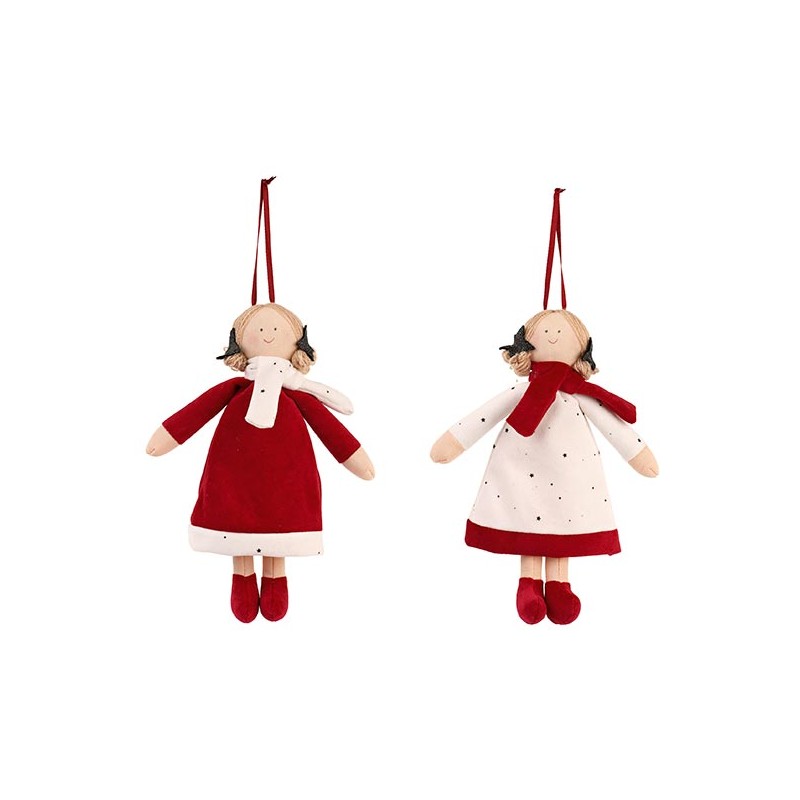 Bambolina di tessuto da appendere disponibile in due dimensioni con colore assortito