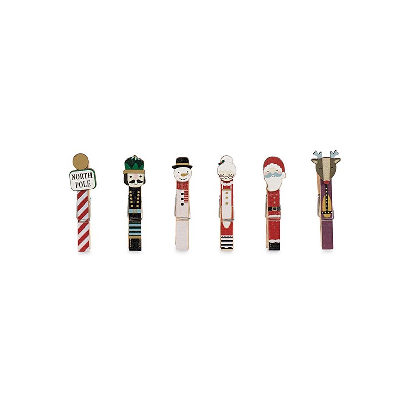 Set di 6 mollettine di legno a tema natalizio