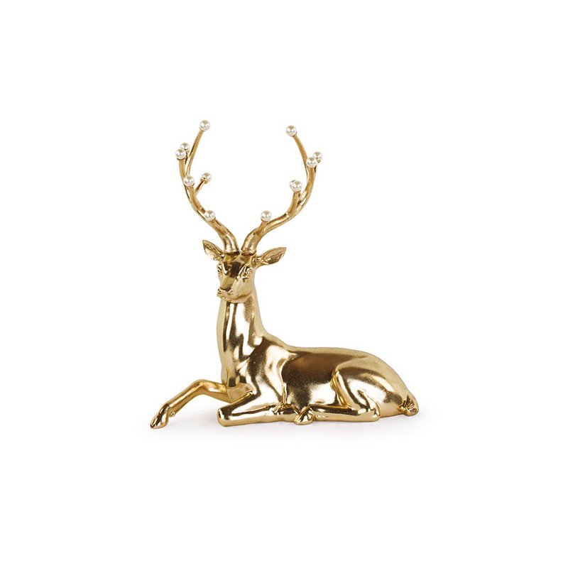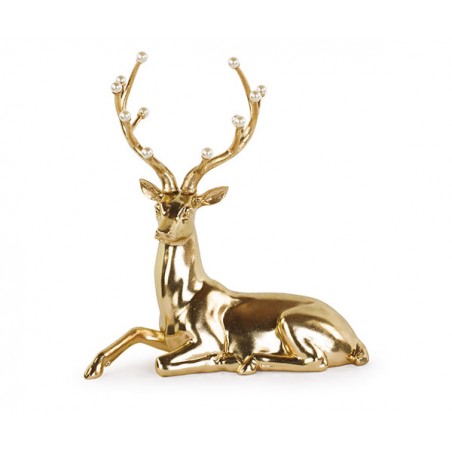 Statua di cervo color oro con perle sulle corna disponibile in due fantasie.