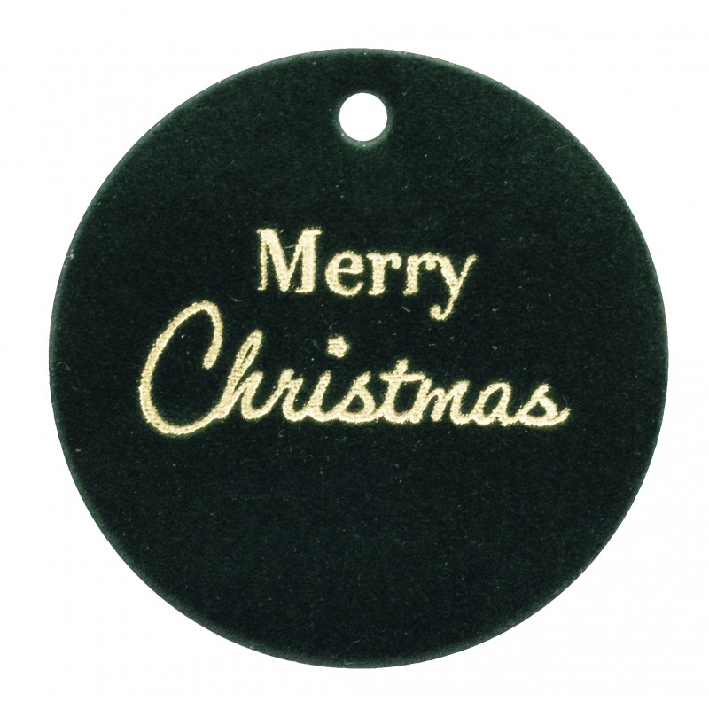 Bigliettini Natalizi rotondi con foro passanastro e scritta Merry Christmas.