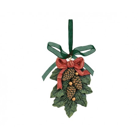 Addobbi a forma di pigne con fiocchi da appendere.