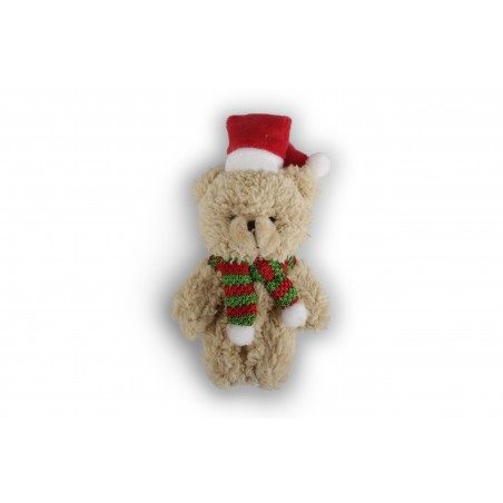 Soffice orsetto con cappello di Babbo Natale e sciarpa.