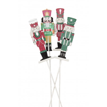 Bastoncino in legno con soldatini di Natale colorati assortiti sulla parte superiore.