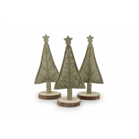 Alberello decorativo in feltro e con base in legno.
