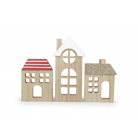 Set di 3 case in legno con altezze diverse per esposizioni.