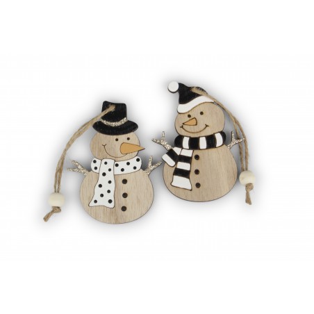 Set di 6 addobbi a forma di pupazzi di neve in legno da appendere.