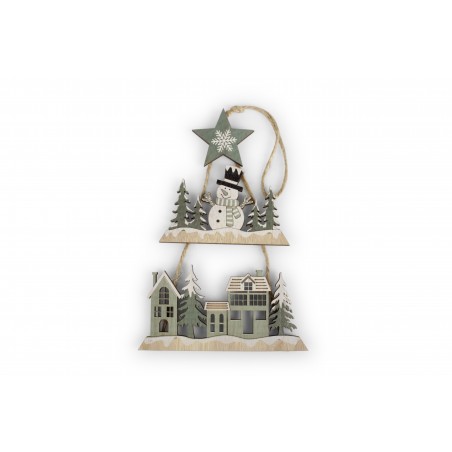 Addobbi a forma di paesaggio invernale natalizio su due piani da appendere.