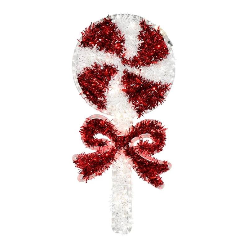 Addobbo di Natale a forma di lecca lecca natalizio bianco e rosso con luci e LED