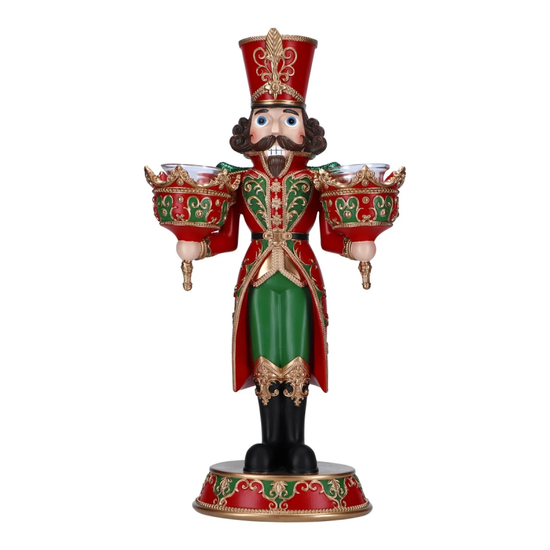 Portacandela a forma di soldatino schiaccianoci di Natale per due candele di colore rosso.