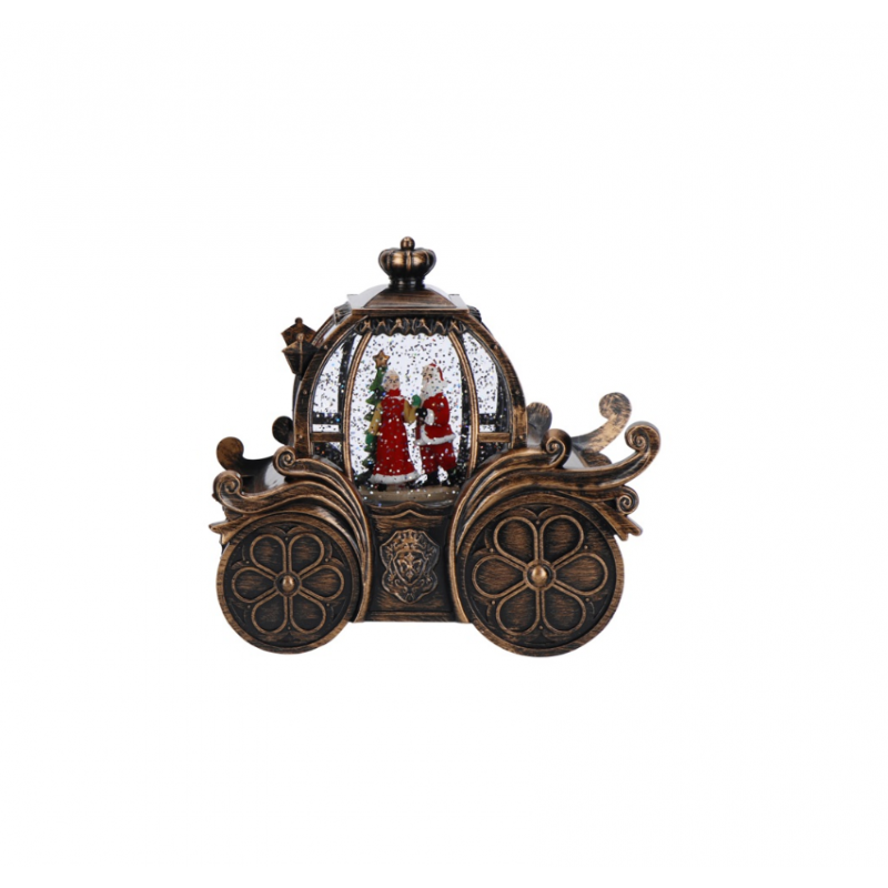 Carrozza a forma di zucca di bronzo con paesaggio animato.