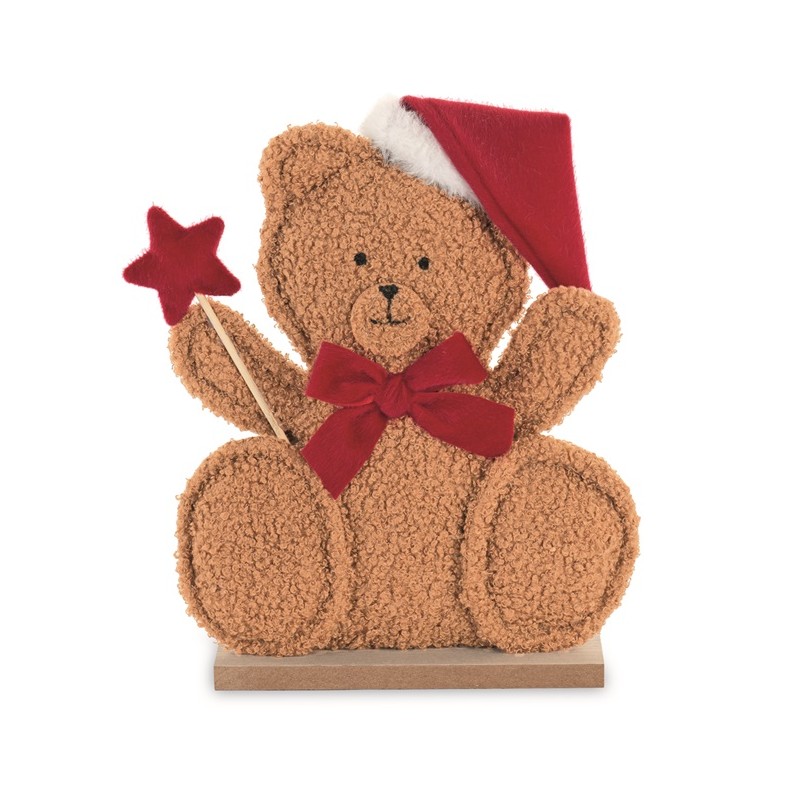 Orsetto in ecopelle con cappellino di Babbo Natale e fiocco rosso