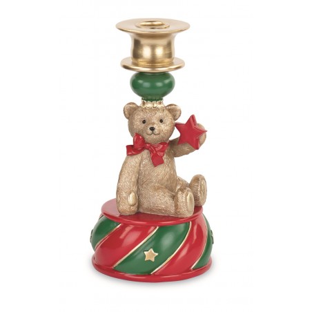 Portacandela a forma di orsetto di Natale con un fiocco rosso.