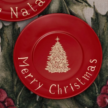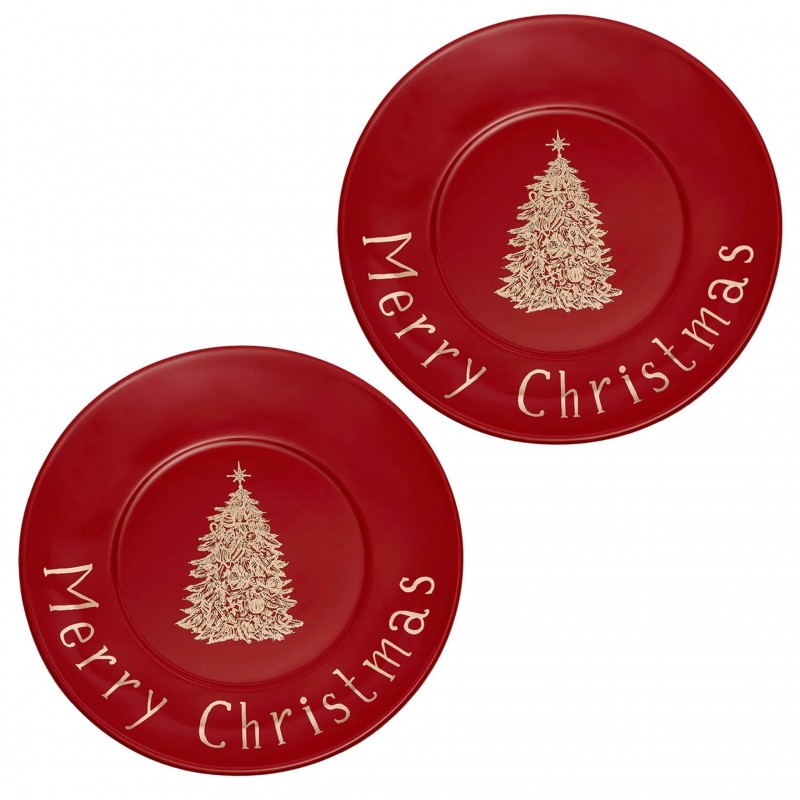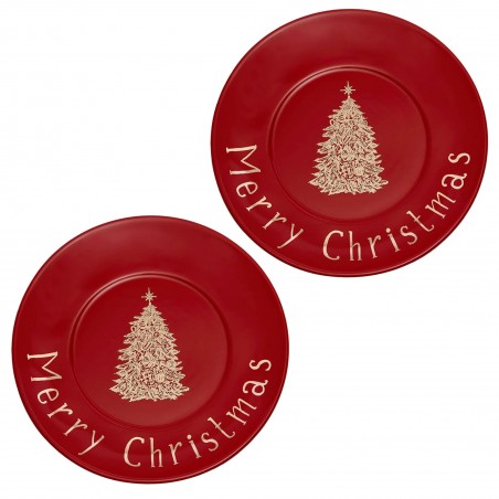 Set di due piatti natalizi in gres per dessert.