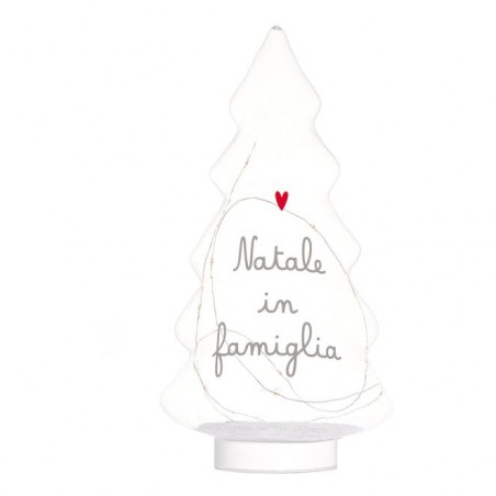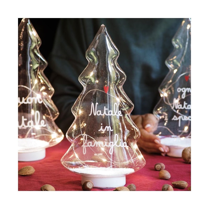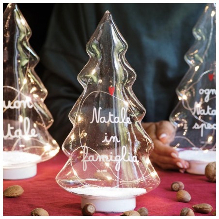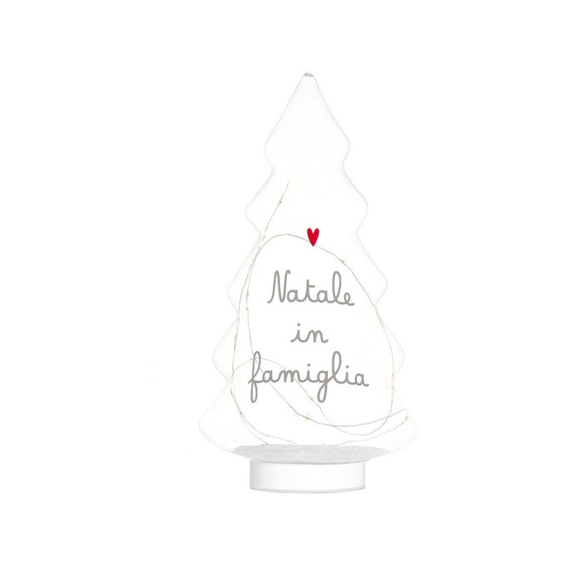 Albero in vetro con Led e scritta "Natale in famiglia"