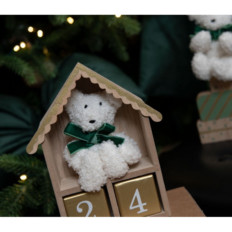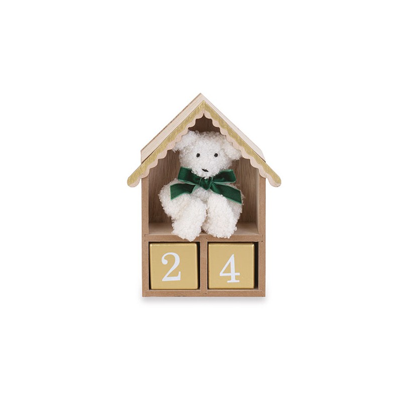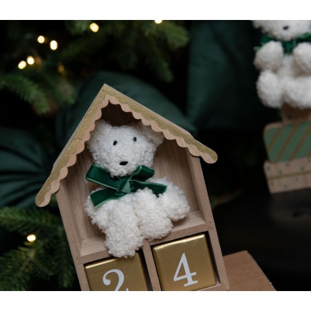 Calendario dell'avvento a forma di casetta con orsetto.