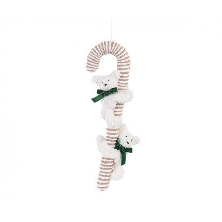 Orsetti in tessuto aggrappati ad un bastoncino candy da appendere.