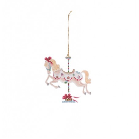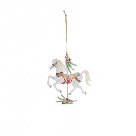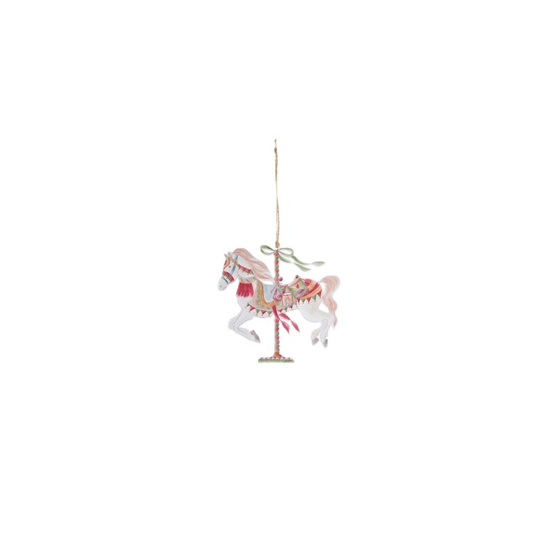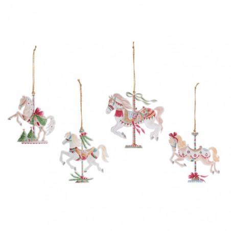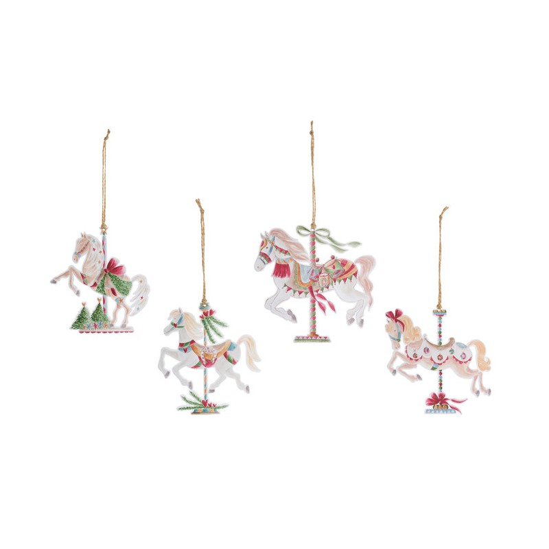 Decorazione in metallo assortita a forma di cavallo da giostra da appendere.