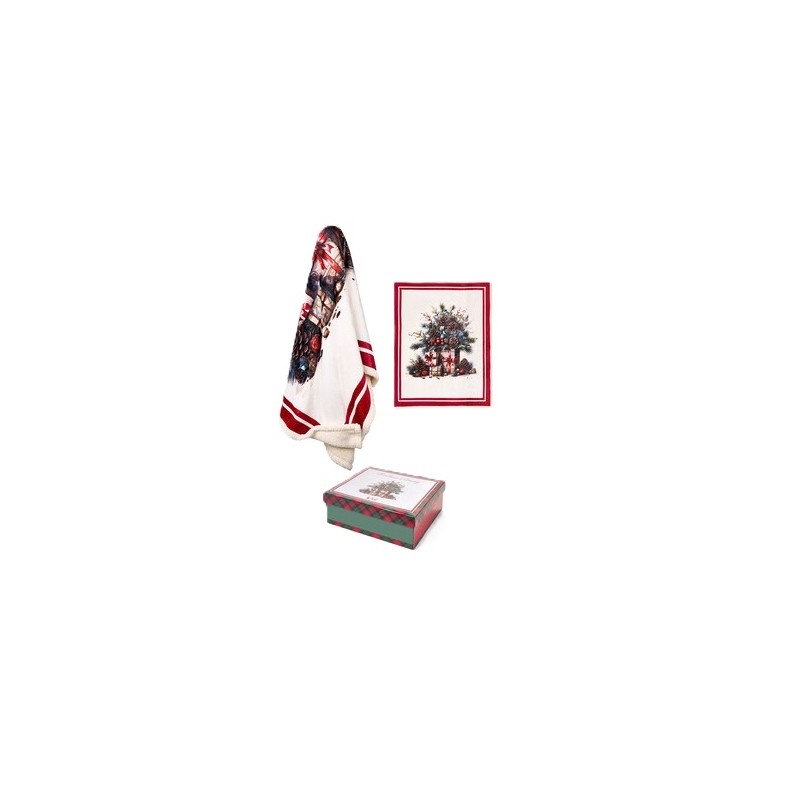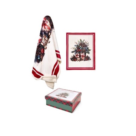 Plaid con scatola natalizia disponibile in 3 fantasie.