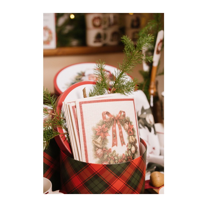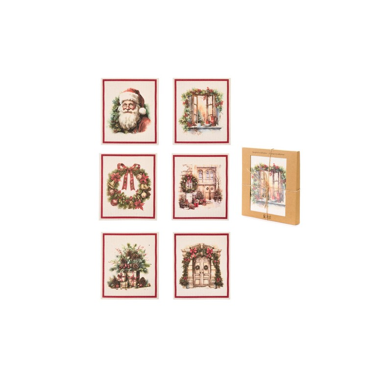 Set di sei spugnette da cucina in cellulosa con disegni natalizi.