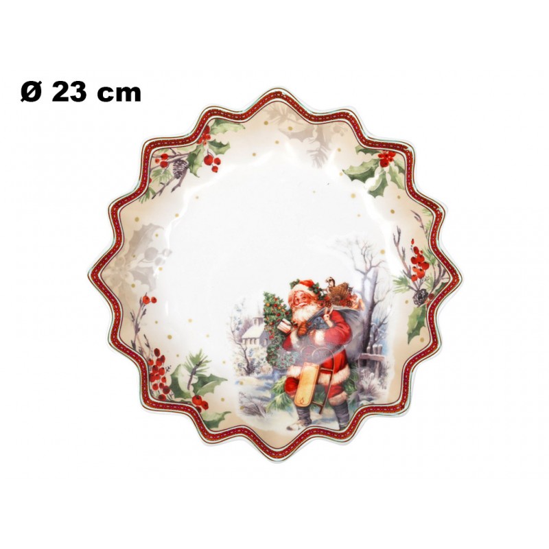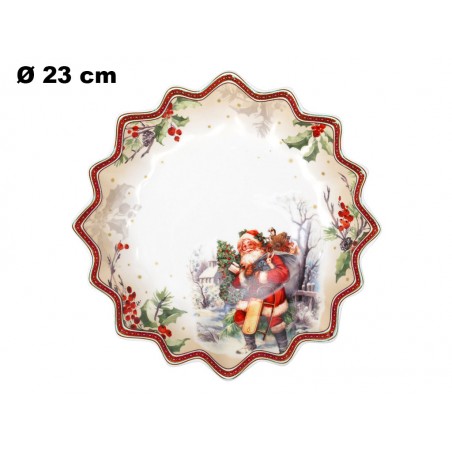 Piatto piano poligonale con Babbo Natale in versione vintage.