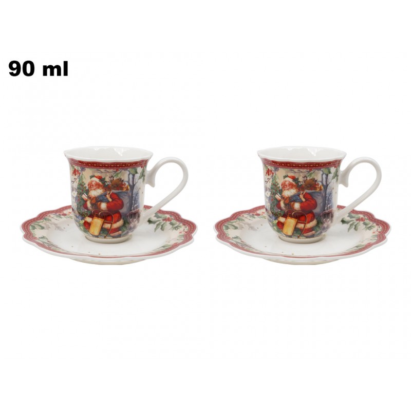 Set di due tazze con disegno di Babbo Natale vintage con piattini.