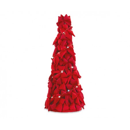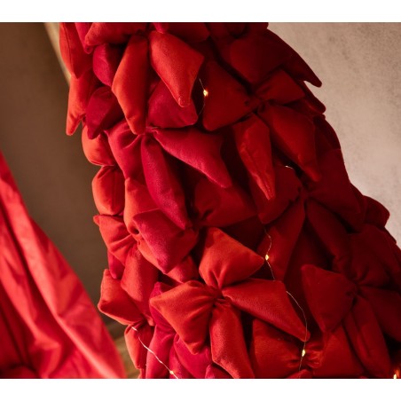 Albero di Natale nella versione slim ricoperto di fiocchi rossi e LED disponibile in tre diverse dimensioni.