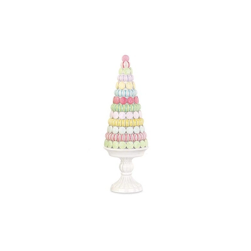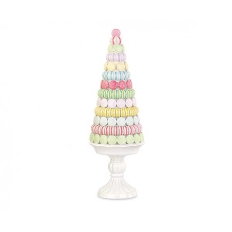 Alzata decorativa con piramide di macaron in ceramica multicolore
