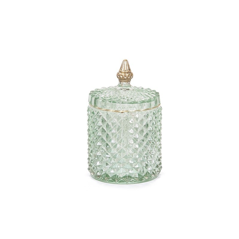 Barattolo rotondo in vetro utilizzato dalle wedding planner per contenere confetti, fiori o candele.