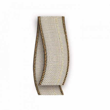 Nastro velato con un filato metallizzato, che lo rende elegante.