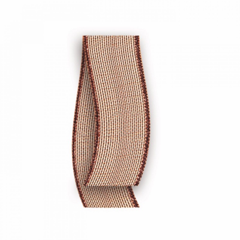 Nastro velato con un filato metallizzato, che lo rende elegante.