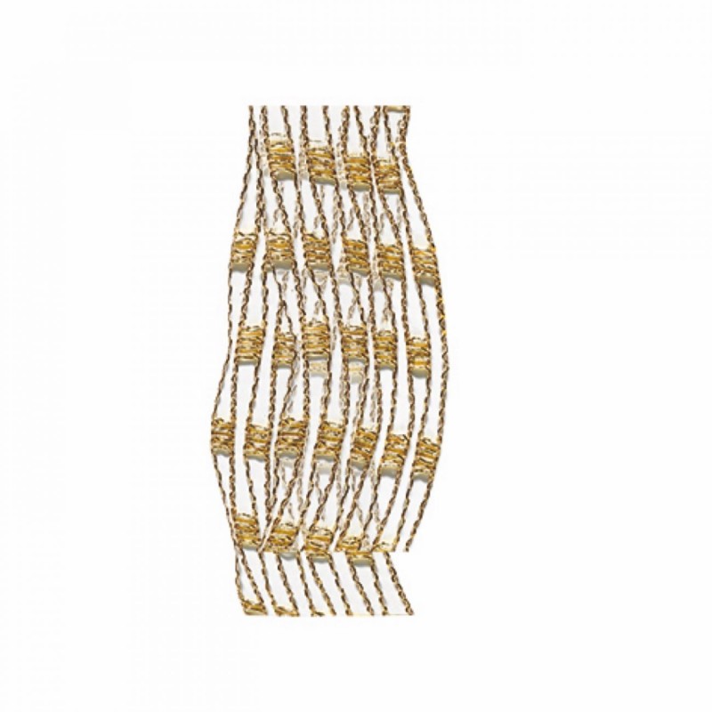Questo nastro in rete di filato metallizzato è caratterizzato dalla possibilità di essere ampliato in larghezza.