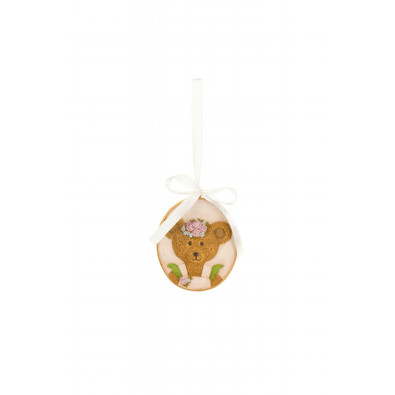 Decorazione tonda con l'immagine di orsetti disponibili nella versione maschile o femminile.