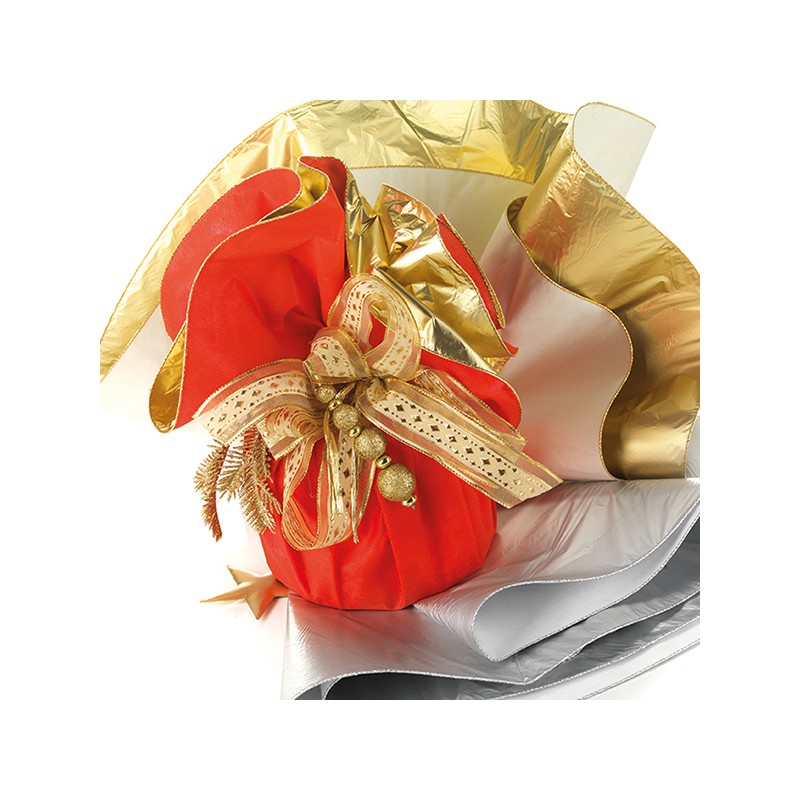 Fogli in TNT di Natale con bordo oro per confezionare panettoni.