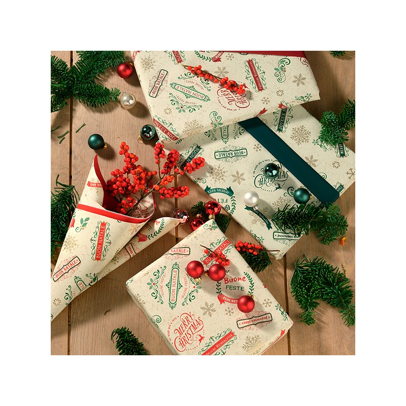 Bobina Natalizia realizzata in diversi colori in polipropilene perlato per confezionare ceste regalo, composizioni floreali o pacchi regalo in generale.