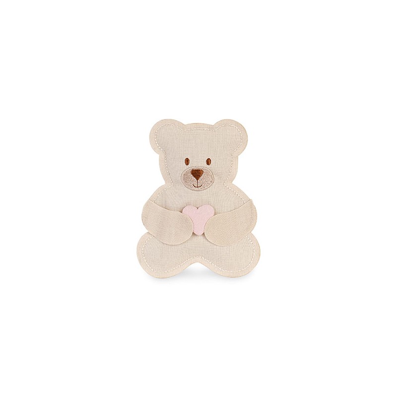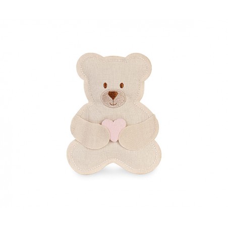 Sacchettino a forma di orsetto che stringe un cuore colorato per bomboniere