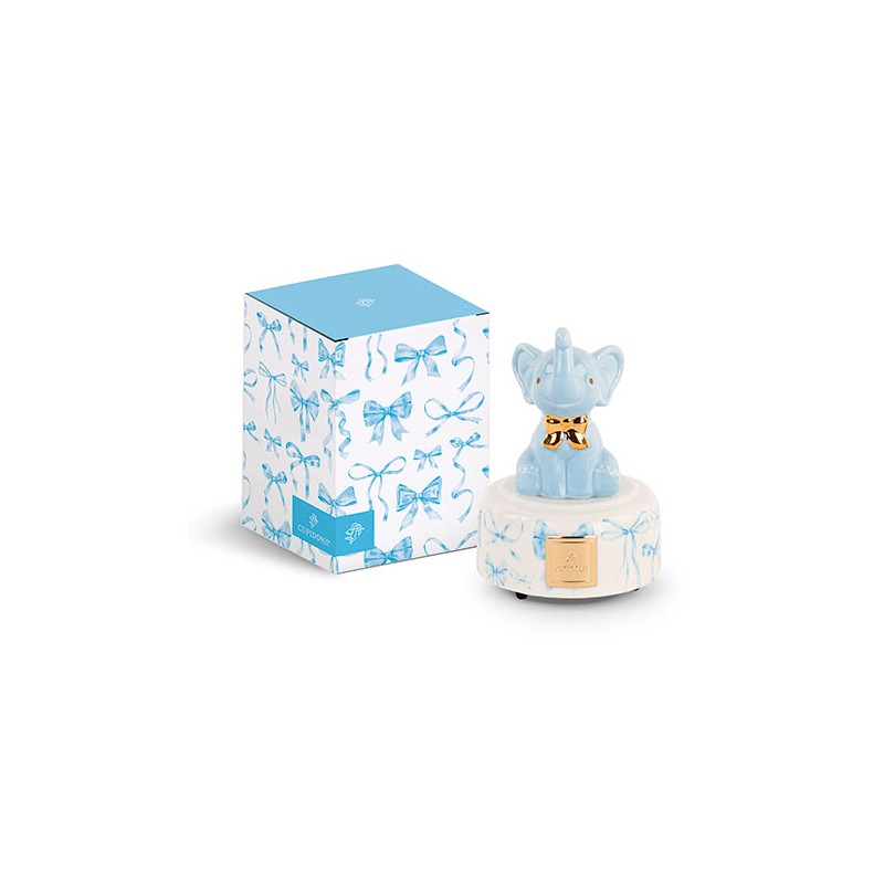 Carillon a forma di elefantino venduto con scatola dedicata.