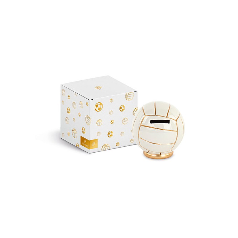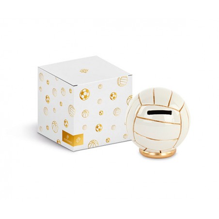 Salvadanaio a forma di palla da Volley con dettagli oro e scatola regalo.