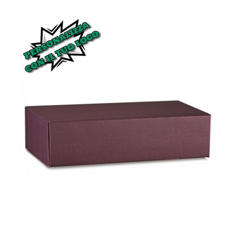 Scatola per confezionare 2 bottiglie stese modello bordolese o borgognotta, oppure prodotti enogastronomici vari.
