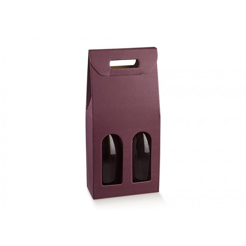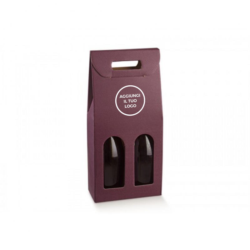 Scatola in cartone accoppiato con maniglia per confezionare 2 bottiglie verticali modello bordolese, borgognotta.